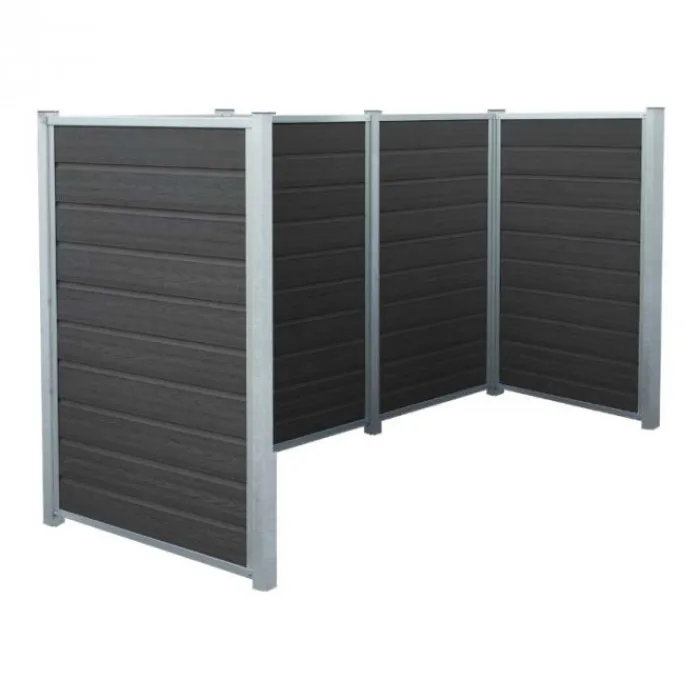 Hot Plus Danmark Containerscherm composiet – Artura antraciet met stalen palen – 99 x 288 x 142 cm
