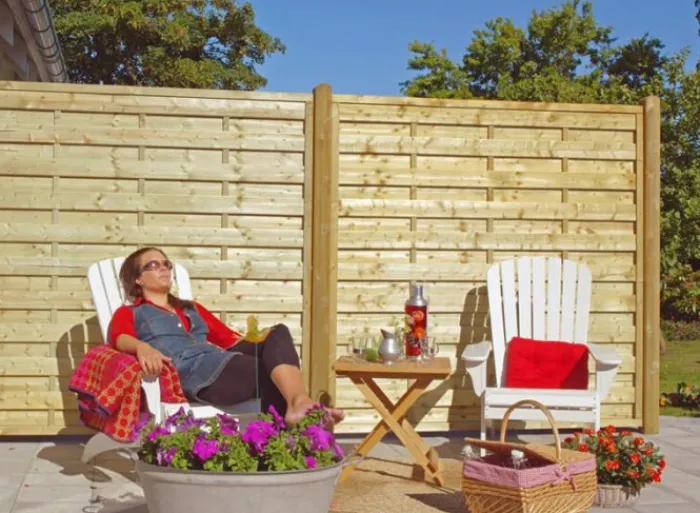 De schuttingen bestaan uit horizontale planken, gemaakt van noordelijke zachthout. De houten planken zijn allemaal geïmpregneerd. Hierdoor wordt het hout langdurig beschermd tegen aantasting door weersomstandigheden, bacteriën, insecten en schimmels. De Bergen serie van Plus is verkrijgbaar in meerdere hoogtes en breedte maten.