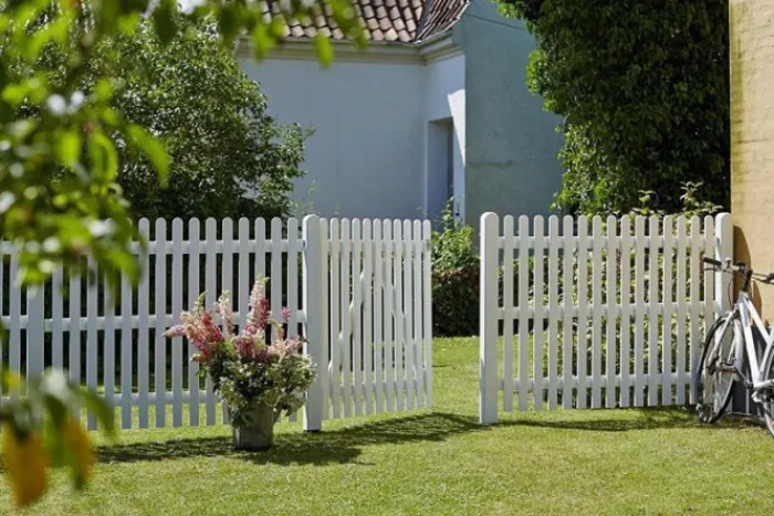 De schuttingen bestaan uit verticale planken die afgerond zijn. Ze zijn gemaakt van Scandinavisch zachthout. De houten planken zijn geïmpregneerd en wit dekkend afgelakt. Hierdoor wordt het hout langdurig beschermd tegen aantasting door weersomstandigheden, bacteriën, insecten en schimmels.