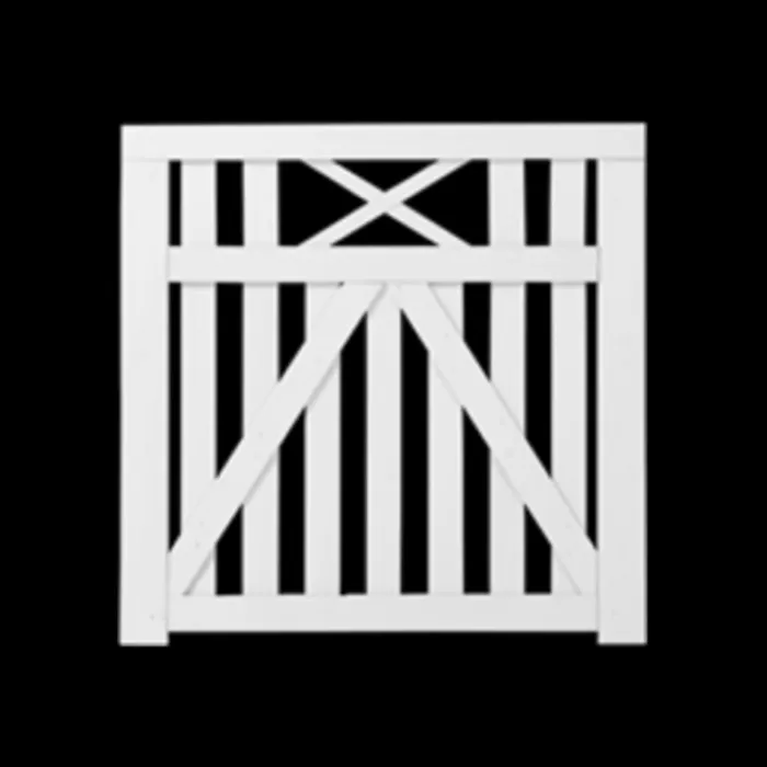 Plus tuinpoort recht vuren geimpregneerd en wit afgelakt uit de serie Vinesse. De afmetingen van deze poort zijn 100 x 98 cm (b x h) en de dikte is 4,4 cm. RVS geschroefd.