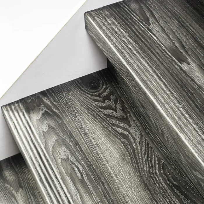 Dit is een complete Stepwoord traprenovatieset met SPC toplaag traptreden en stootborden in de kleur antraciet, inclusief montagekit en afwerkingskit. Deze complete set is geschikt voor een trap met 2 kwart draai met 15 treden. De set wordt geleverd inclusief stootborden, omdat het een set voor een dichte trap betreft.