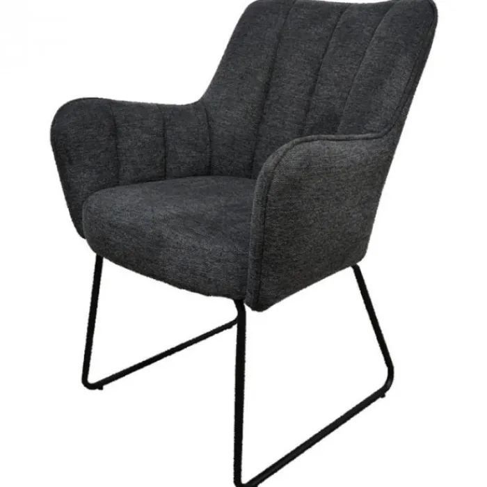 Bo Lundgren eetkamerstoel Kevin, stof Bjorn grof geweven, kleur dark grey. De eetkamerstoel Arne is een fraaie eetkamerstoel gestoffeerd met een grof geweven stof in de kleur dark grey. Het kuipvormige model zorgt ervoor dat de stoel heerlijk comfortabel zit! Zo kun je urenlang heerlijk tafelen…! De Kevin is uitgevoerd met een zwart metalen onderstel. Deze geeft de stoel een klassieke uitstraling.