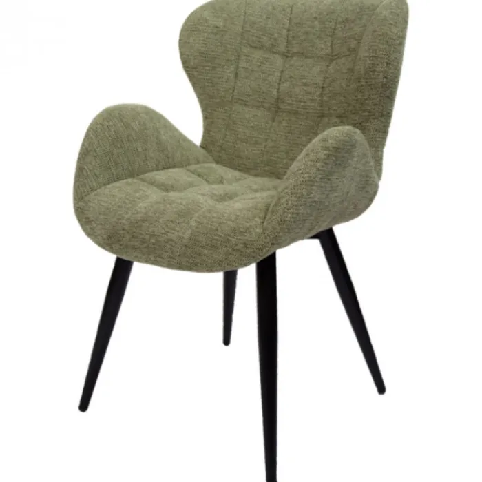 Bo Lundgren eetkamerstoel Simon, stof Fantasy geweven, kleur groen. De eetkamerstoel Simon is een fraaie eetkamerstoel gestoffeerd met een geweven stof in de kleur groen. Het kuipvormige model zorgt ervoor dat de stoel heerlijk comfortabel zit! Zo kun je urenlang heerlijk tafelen…! De Simon is uitgevoerd met een zwart metalen onderstel. Deze geeft de stoel een klassieke uitstraling.