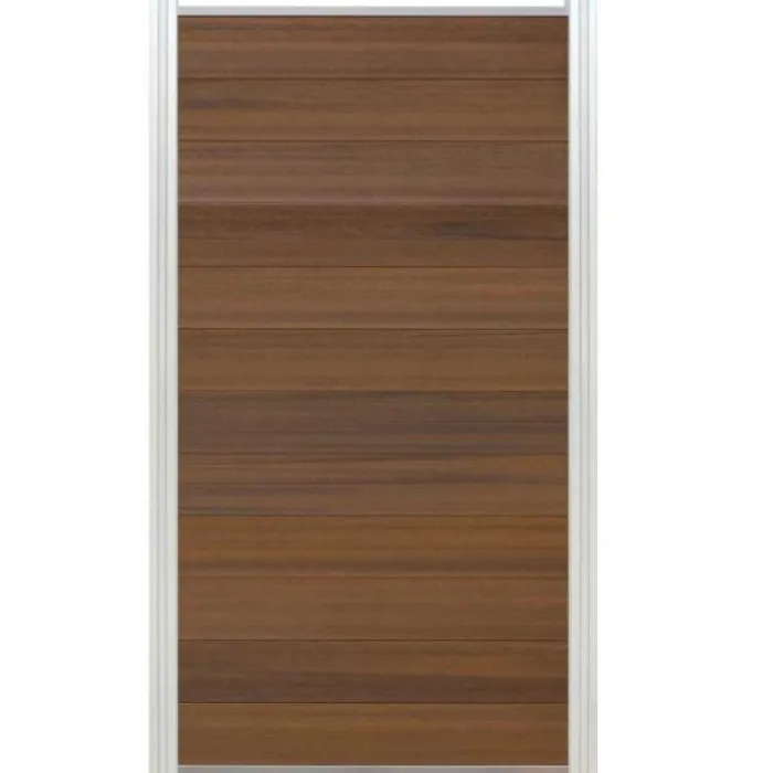 Schutting composiet co-extrusie Garda teak met blank aluminium kader (90 x 180 cm). Deze schutting wordt geleverd als een zelfbouw pakket waarmee je zelf een unieke schutting kunt maken.