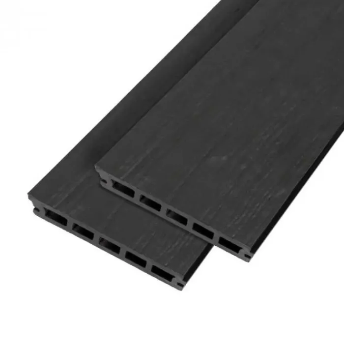 Vlonder totaalpakket voor 1m2 gelegd met antraciet composiet vlonderplanken van 400 cm, 2,1 cm dik en 14,5 cm breed. Dit pakket bestaan uit vlonderplanken, onderbalken, clips en schroeven om de vlonderterras te maken. Vul het benodigd aantal vierkante meter terras in en de website rekent automatisch uit hoeveel planken je ontvangt. Bij dit pakket wordt geen rekening gehouden met snijverlies. Leg je je terras in een halfsteenpatroon, bestel dan extra onderbalken mee. De vlonderplank is eenzijdig te gebruiken.