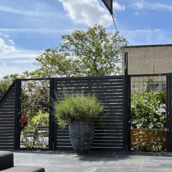 C-Wood composiet zelfbouw Louvre schutting. Geschikt om een louvre scherm te maken van 180 cm hoog en maximaal 180 cm breed. De breedte is eenvoudig in te korten.