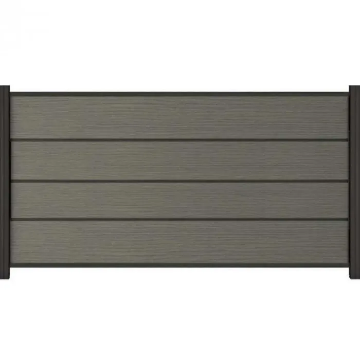 C-Wood zelfbouw schutting composiet Modular co-ex grijs met antraciet aluminium accessoires. Geschikt om een scherm te maken van 97 cm hoog en maximaal 180 cm breed. De breedte is eenvoudig in te korten.