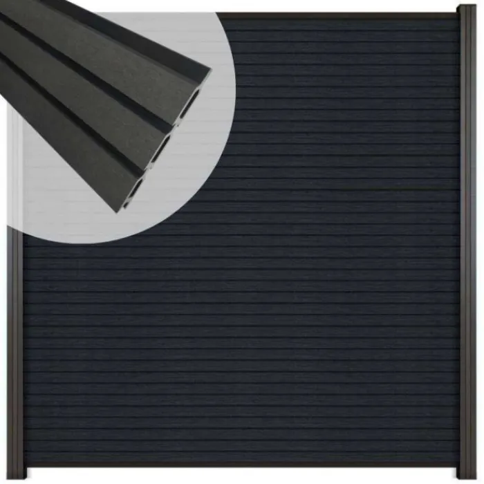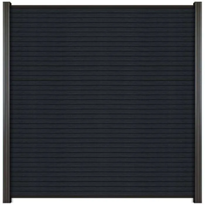 C-Wood zelfbouw schutting composiet Rhombus Triple antraciet met antraciet aluminium accessoires. Geschikt om een scherm te maken van 200 cm hoog en maximaal 180 cm breed. De breedte is eenvoudig in te korten.