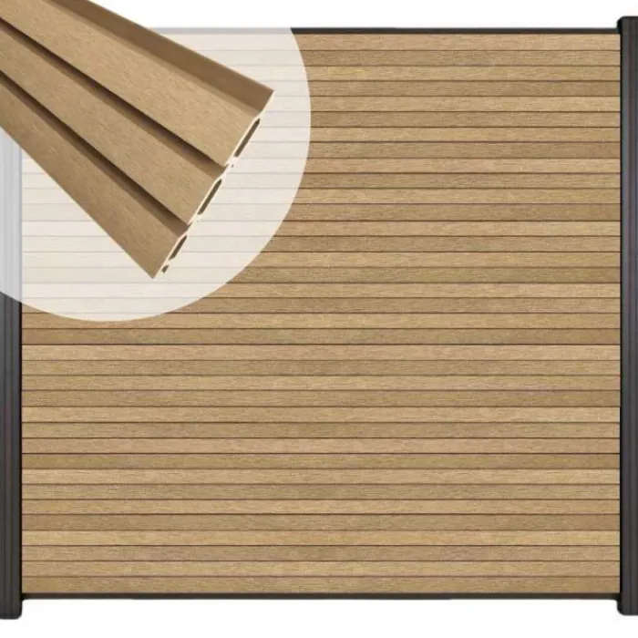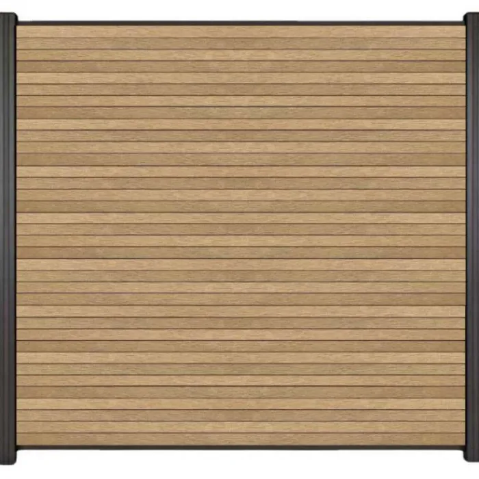C-Wood zelfbouw schutting composiet Rhombus Triple teak met antraciet aluminium accessoires. Geschikt om een scherm te maken van 180 cm hoog en maximaal 180 cm breed. De breedte is eenvoudig in te korten.