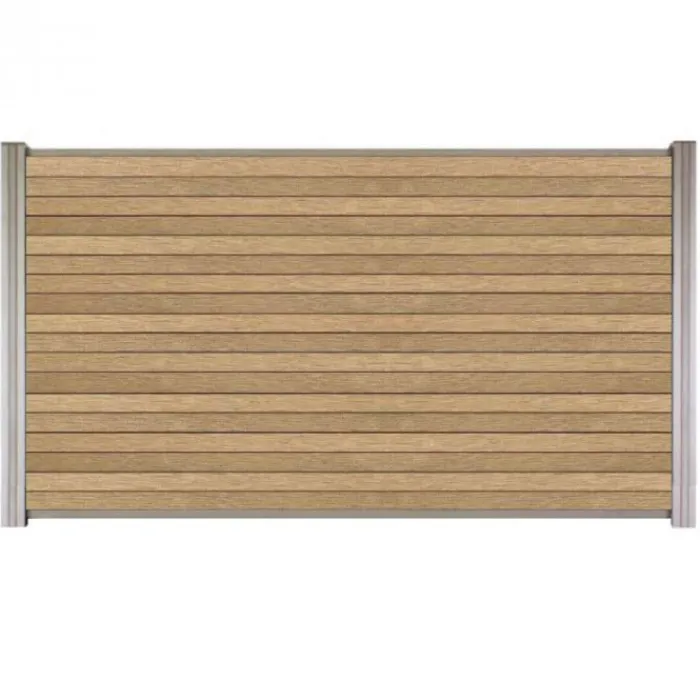 C-Wood zelfbouw schutting composiet Rhombus Triple teak met blank aluminium accessoires. Geschikt om een scherm te maken van 90 cm hoog en maximaal 180 cm breed. De breedte is eenvoudig in te korten.