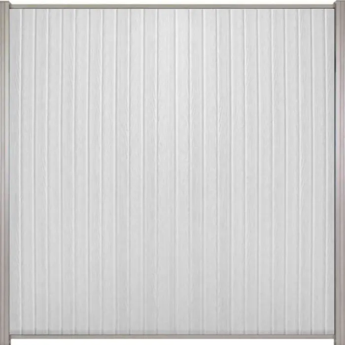 C-Wood zelfbouw schutting composiet Rhombus Double wit met blank aluminium accesoires. Met deze bundel kun je een verticale schutting bouwen circa 170 cm breed en 180 cm hoog.