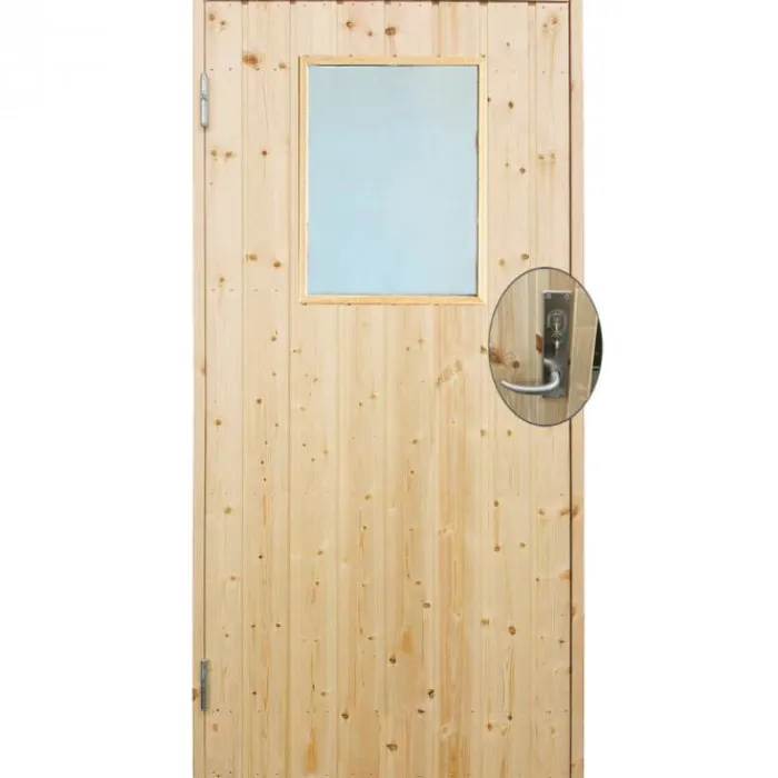 New Plus Danmark Enkele deur met raam incl. kozijn en beslag – Linksdraaiend – Onbehandeld – 88,6 x 197,8 cm