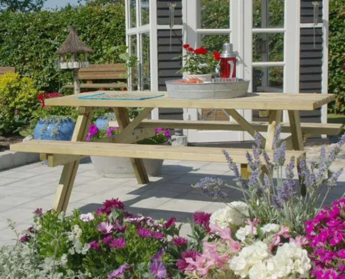 New Plus Danmark Picknicktafel vuren geimpregneerd – Opklapbare zitting – 155 x 177 x 71 cm
