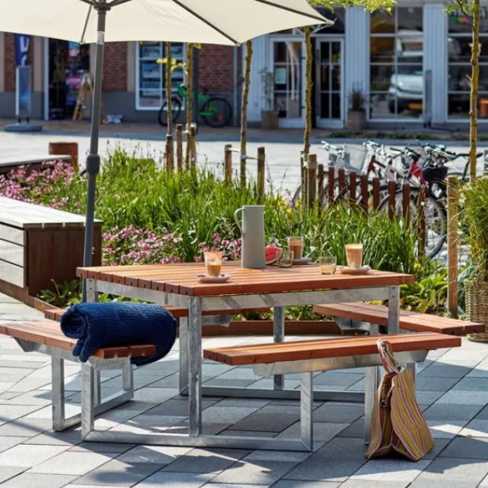 Plus Danmark picknickset vuren geimpregneerd | Twist vierkant gegrond teak (RAL 1006).