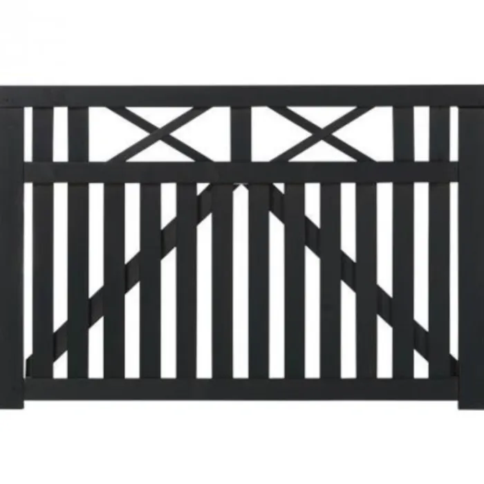 Plus dubbele poort recht vuren geimpregneerd en zwart afgelakt uit de serie Vinesse. De afmetingen van deze poort zijn 150 x 98 cm (b x h) en de dikte is 4,4 cm. RVS geschroefd.