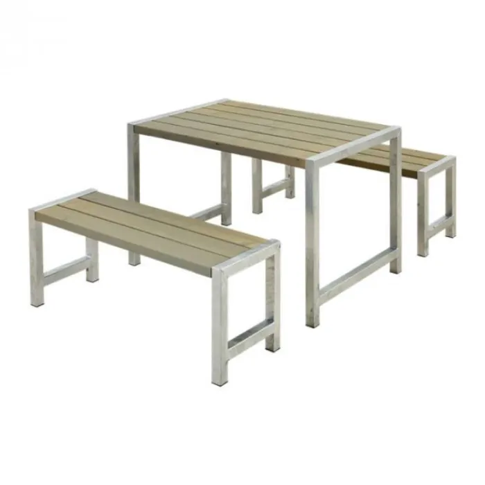 De Plus Danmark tuinset is gemaakt van vuren hout en is gegrond in de kleur grijsbruin (RAL 7023). Tafel met banken leverbaar met of zonder rugleuningen. Het onderstel is gemaakt van thermisch verzinkt staal en is 45 x 45 mm met een verstelbare voetsteun (0-15mm). Geschikt voor 4 personen. Bouwpakket, deels voorgemonteerd, zelf in elkaar zetten.