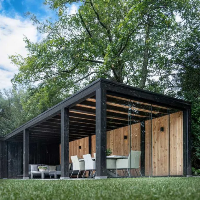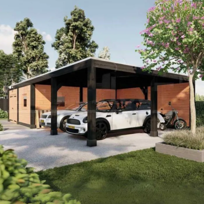 Trendhout buitenverblijf Palermo XXL. Dit is het basis model van 6 meter diep en beschikbaar in diverse breedte maten. Wil je dit buitenverblijf helemaal naar eigen wens samen stellen klik dan op de knop hierboven en ontwerp je buitenverblijf in de 3D configurator.