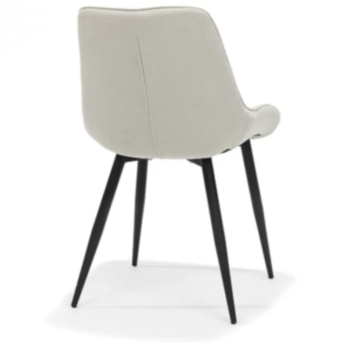 Deze stoel is verkrijgbaar in diverse kleuren en stofsoorten en wordt geleverd met zwart gepoedercoat metalen poten. De verschillende kleuren zijn ook uitstekend met elkaar te combineren. De stoelen beschikken over een hoogwaardige afwerking met decoratieve stiksels.