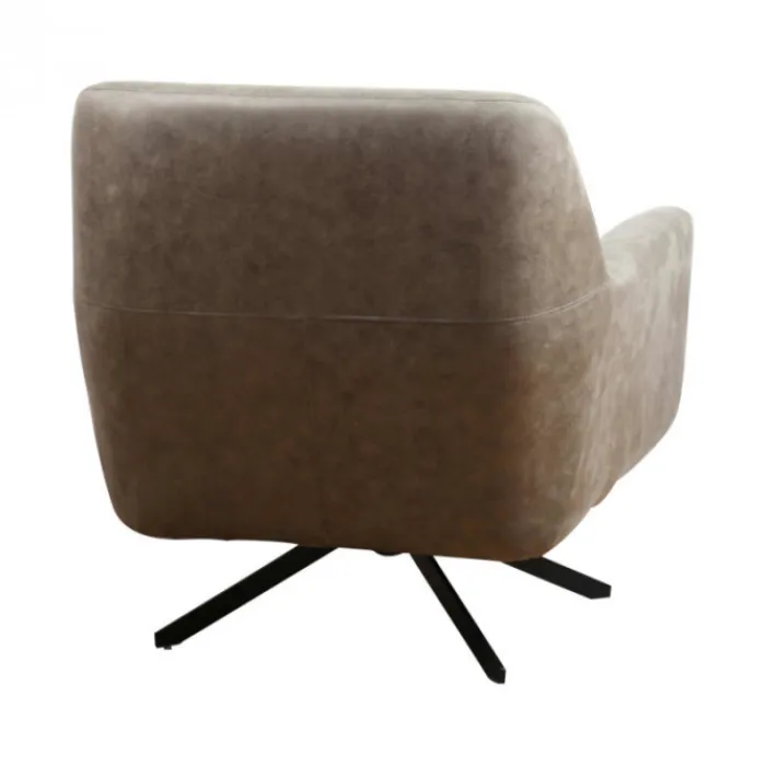 De trendy draaifauteuil Dion is gestoffeerd met de prachtige lederlook stof Soft. De Dion fauteuil is draaibaar en voorzien van zwarte metalen poten.