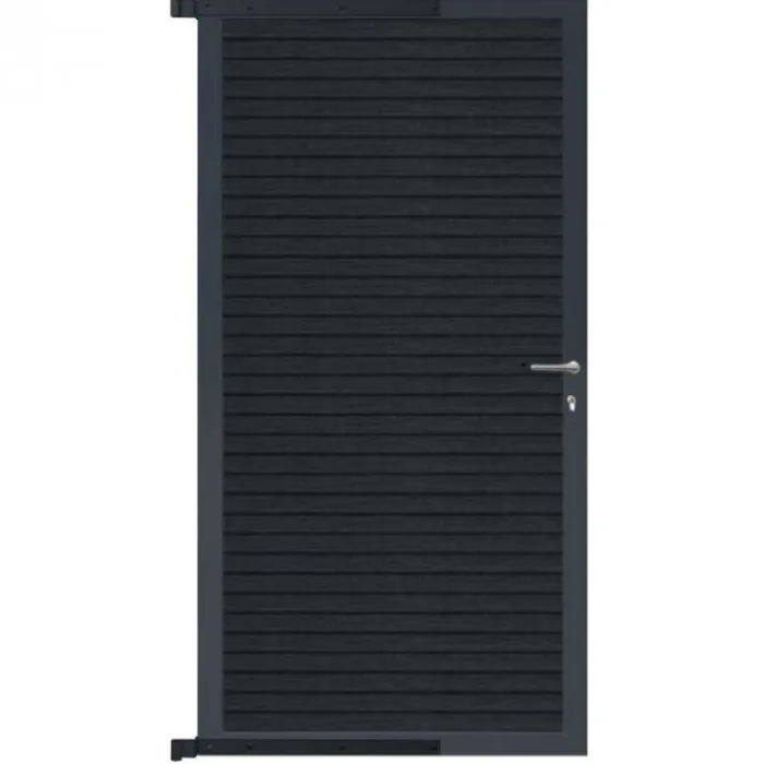 C-Wood zelfbouw tuindeur Rhombus Triple antraciet aluminium frame en composiet antraciet lamellen. Afmeting 90 x 180 cm. De poort wordt geleverd inclusief deurbeslag.