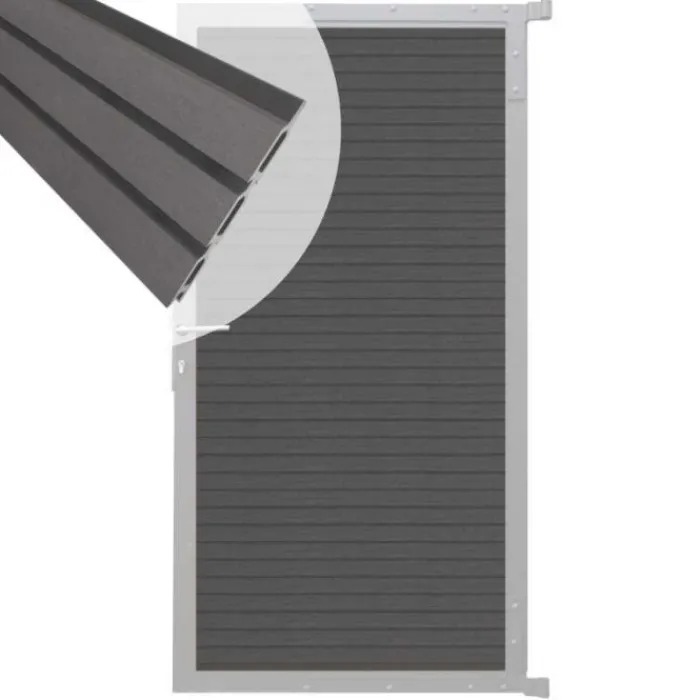 C-Wood zelfbouw tuindeur Rhombus Triple blank aluminium frame en composiet rock grey lamellen. Afmeting 90 x 180 cm. De poort wordt geleverd inclusief deurbeslag.