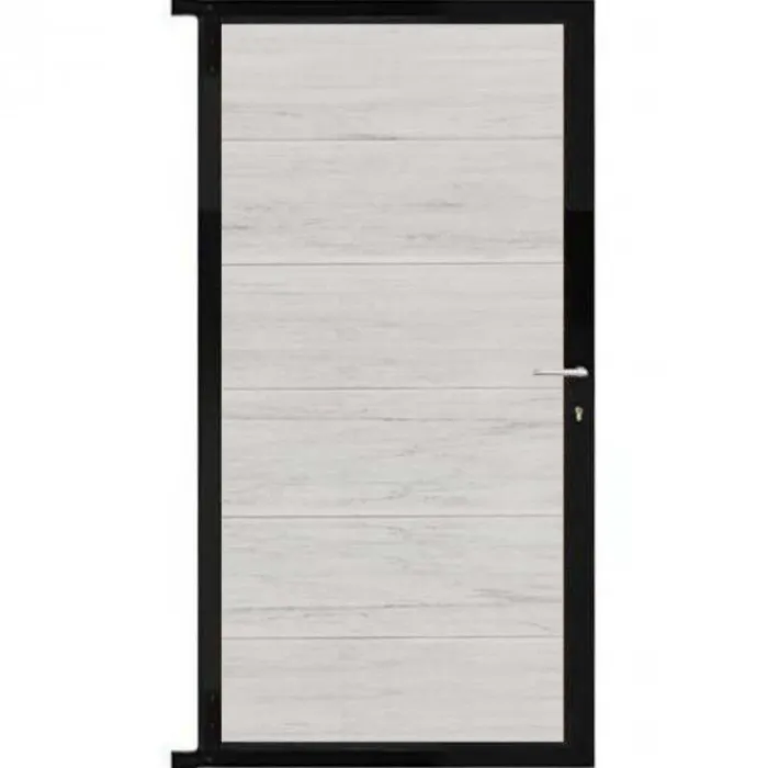 C-Wood tuindeur composiet Mix & Match frame aluminium zwart (90 x 180 cm). De netto hoogte van deze tuindeur is enkele centimeters lager dan de opgegeven 180 cm. Deze komt uit op 175 cm hoog. De deur wordt geleverd inclusief deurbeslag.