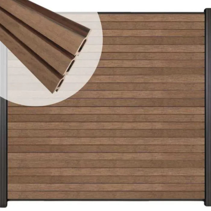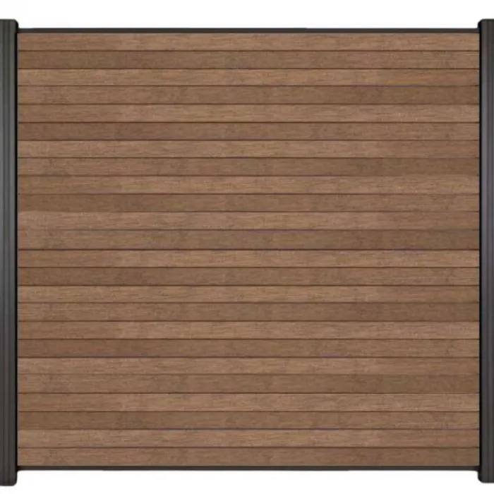 C-Wood zelfbouw schutting composiet Rhombus Triple bruin gevlamd met antraciet aluminium accessoires. Geschikt om een scherm te maken van 180 cm hoog en maximaal 180 cm breed. De breedte is eenvoudig in te korten.