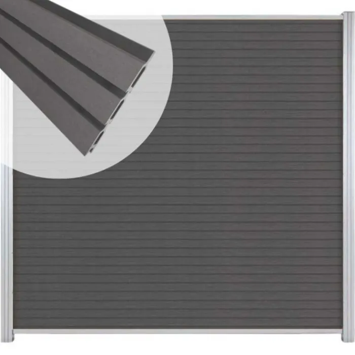 C-Wood zelfbouw schutting composiet Rhombus Triple rock grey met blank aluminium accessoires. Geschikt om een scherm te maken van 180 cm hoog en maximaal 180 cm breed. De breedte is eenvoudig in te korten.