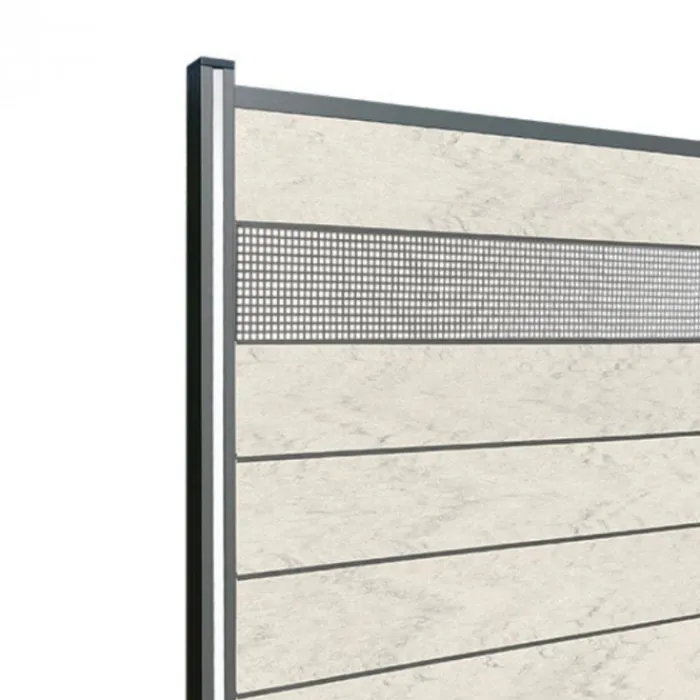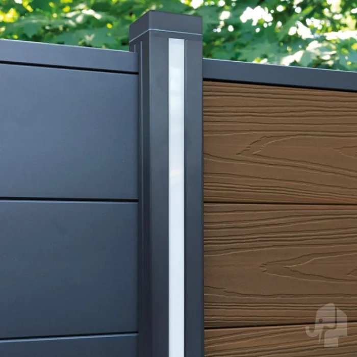 Met het modulaire systeem van Elephant kun je naar eigen wens je schutting samenstellen. Zo kun je composiet lamellen afwisselen met een aluminium rooster of hardglas en heb je altijd een uniek scherm in de tuin. Daarnaast heeft het ook nog eens een uitstekende levensduur. Gebruik de modulaire palen en eindprofielen (boven- en onderregel) om de schutting af te maken. Om de schutting helemaal in de spotlight te zetten, kun je als laatste unieke detail led-verlichting in de palen bevestigen.