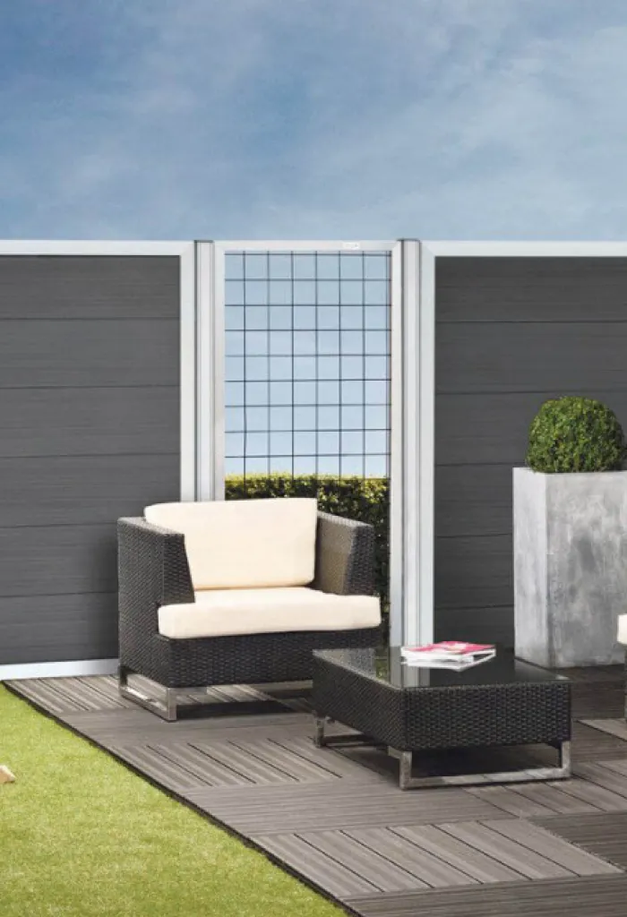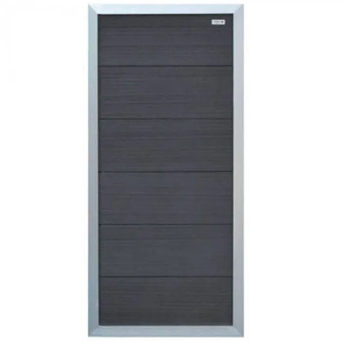 Tuinscherm composiet Forte Antraciet met blank aluminium kader 90 x 180 cm.