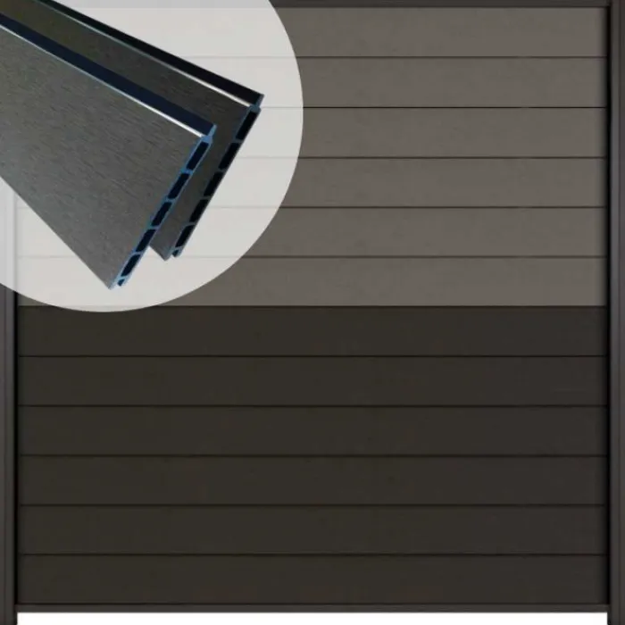 Deze set bestaat uit 6 lamellen composiet antraciet en 6 lamellen rock grey. Je begint onder en je eindigt bovenop altijd met een aluminium antraciete profielen. exclusief palen! Gebruik hiervoor altijd de Elephant Modular/Mix&Match sleufpalen.