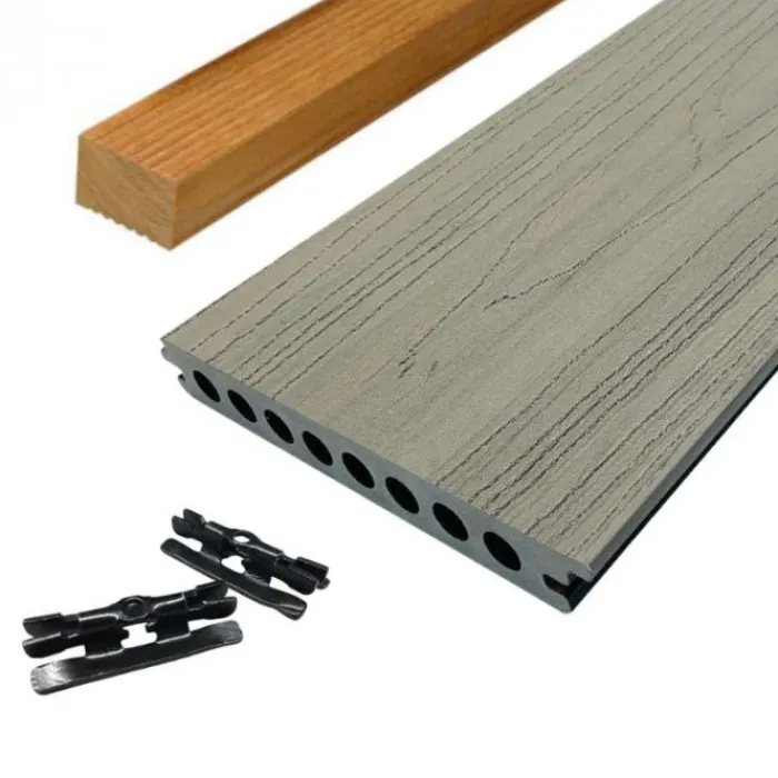 Vlonder totaalpakket voor 1m2 gelegd met dark grey (grijs) composiet vlonderplanken van 400 cm lang, 2,1 cm dik en 14 cm breed. Dit pakket bestaat uit vlonderplanken, onderbalken clips en schroeven om een vlonderterras te maken. Vul het benodigd aantal vierkante meter terras in en de website rekent automatisch uit hoeveel planken je ontvangt. Bij dit pakket wordt geen rekening gehouden met snijverlies.