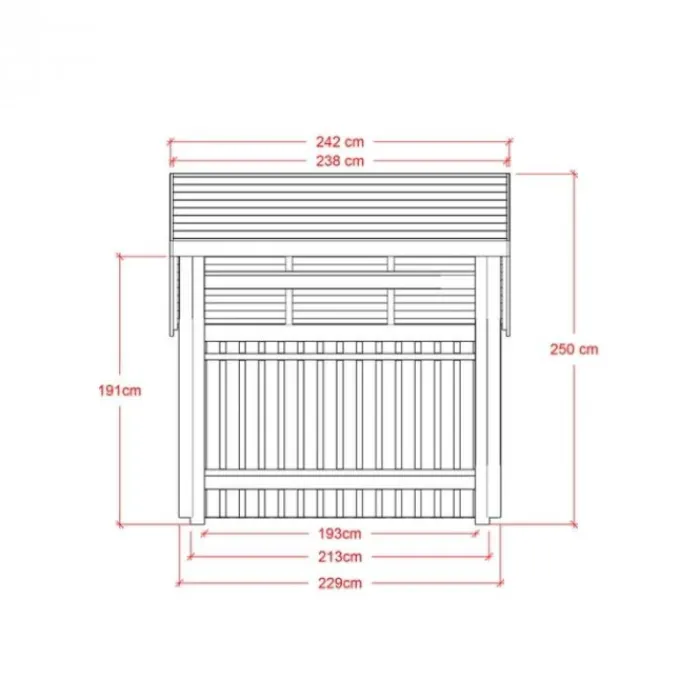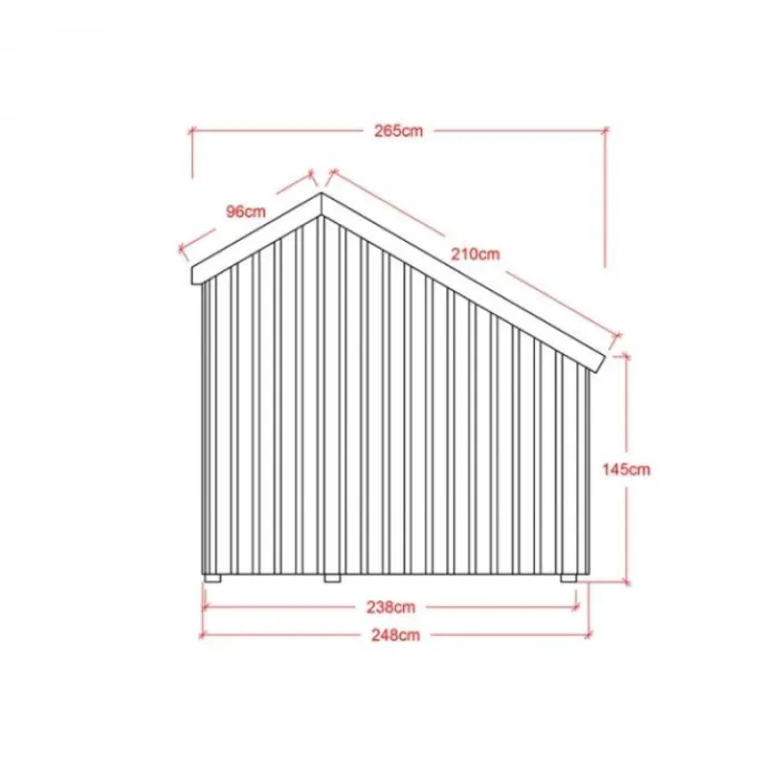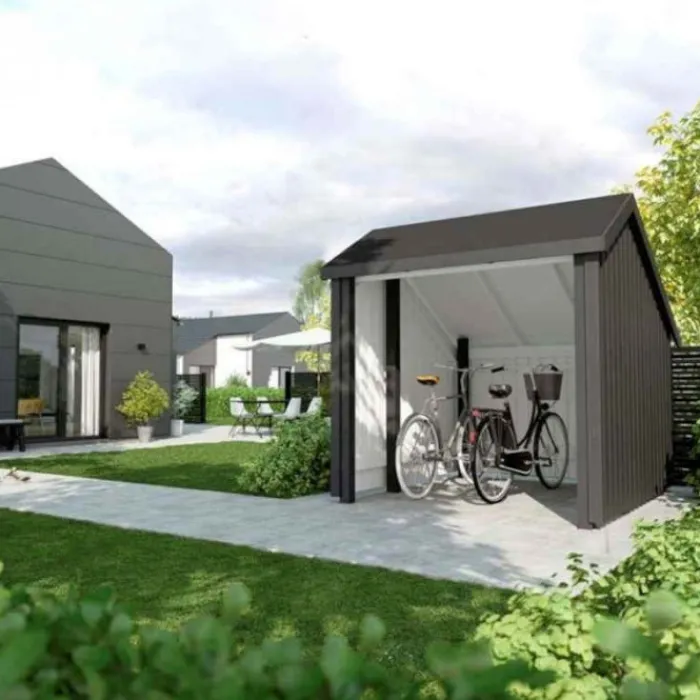 Plus Danmark berging open 5,7 m2 onbehandeld 248 x 229 x 250 cm. Deze fietsenstalling is gemaakt van onbehandeld Scandinavisch sparrenhout (vuren). Doordat de onderdelen onbehandeld zijn kan je alles naar eigen wens verven of beitsen. De vloeroppervlakte is 4,6 m2, maar je hebt een buitenoppervlak van 6,5 m2 nodig.