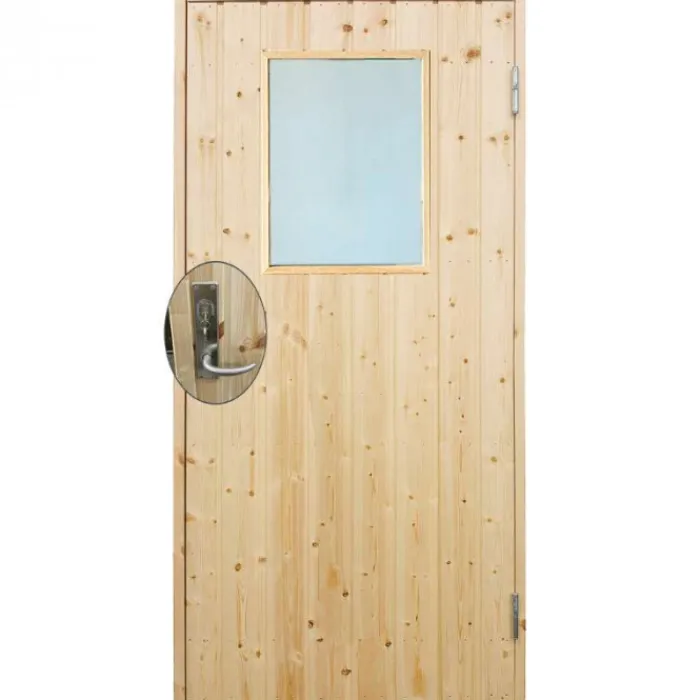 Online Plus Danmark Enkele deur met raam incl. kozijn en beslag – Rechtsdraaiend – Onbehandeld – 88,6 x 197,8 cm