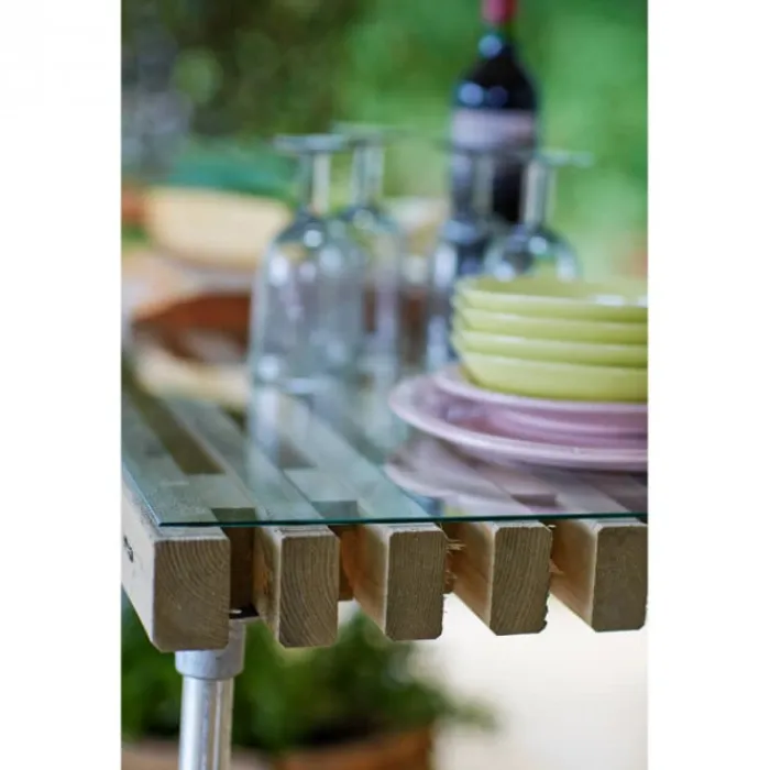 Online Plus Danmark Lattenbijzettafel vuren met wielen – Lengte 140 cm driftwood geverfd