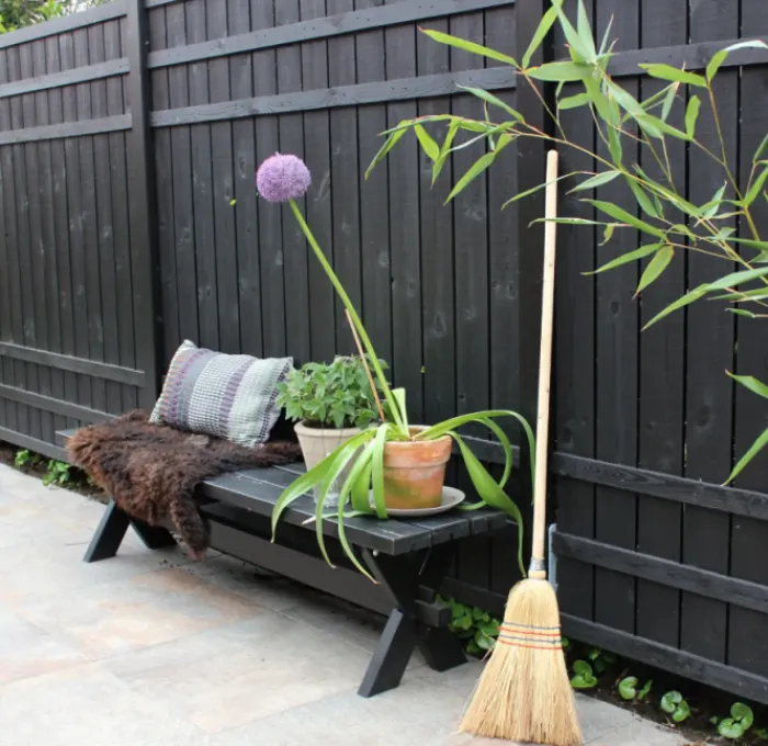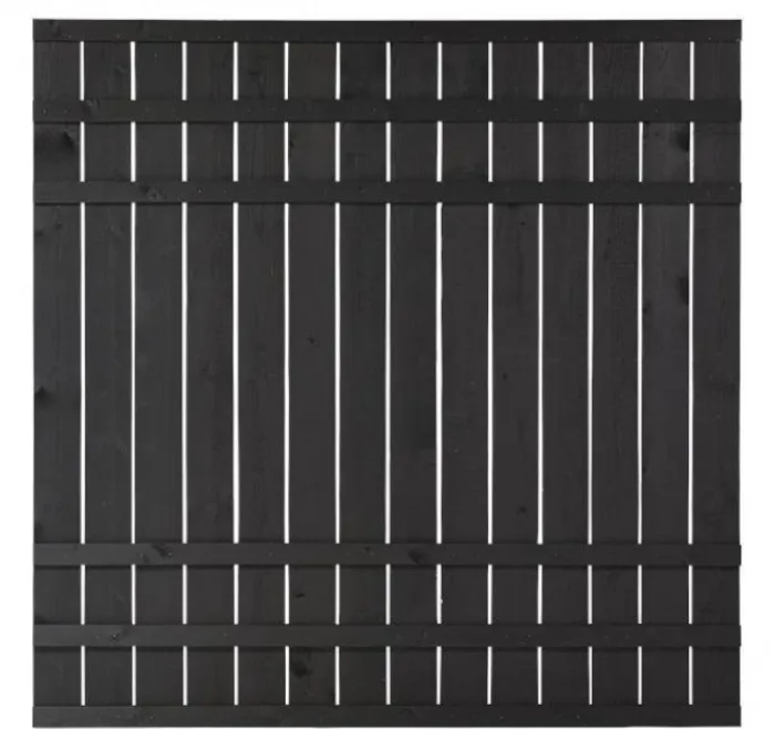 Plus Danmark tuinscherm recht vuren geïmpregneerd en zwart afgelakt uit de serie Rustik. Met ruw oppervlak. RVS geschroefd.