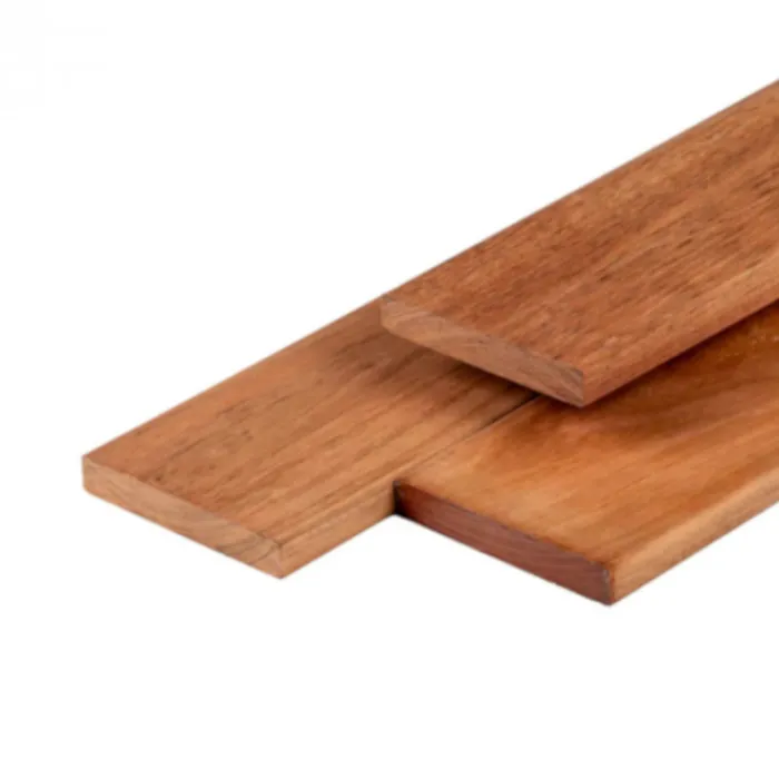 Smaragd vlonderplanken hardhout Jatoba. Dikte 2,1 x breedte 14,5 cm. De planken zijn rondom geschaafd en licht afgerond voor een nettere afwerking.