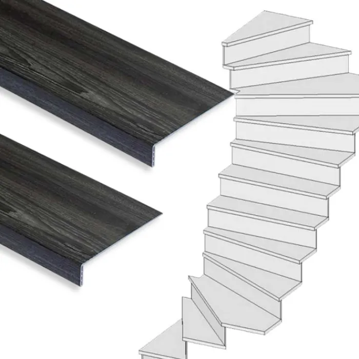 Dit is een complete Stepwoord traprenovatieset met SPC toplaag traptreden in de kleur antraciet, inclusief montagekit en afwerkingskit. Deze complete set is geschikt voor een trap met 2 kwart draai met 12 treden. De set wordt geleverd zonder stootborden.