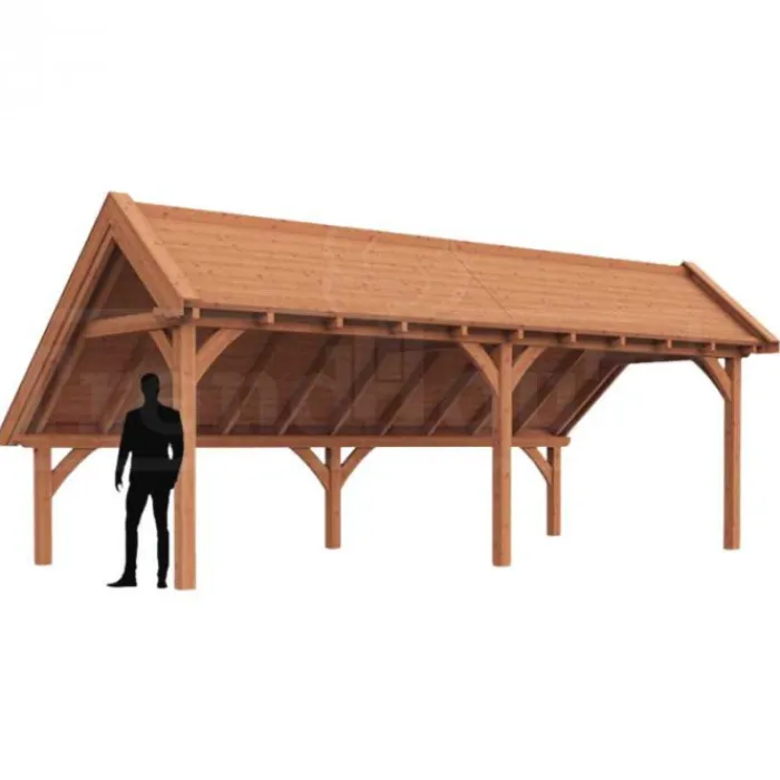 Trendhout Kapschuur De Hoeve XL. Dit is het basis model van 3 meter diep en beschikbaar in diverse breedte maten. Wil je deze kapschuur helemaal naar eigen wens samen stellen klik dan op de knop hierboven en ontwerp je kapschuur in de 3D configurator.
