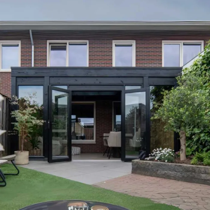 Deze veranda is als bouwpakket samengesteld en het laten opbouwen door Trendhout is mogelijk. Neem contact met ons op voor de mogelijkheden.