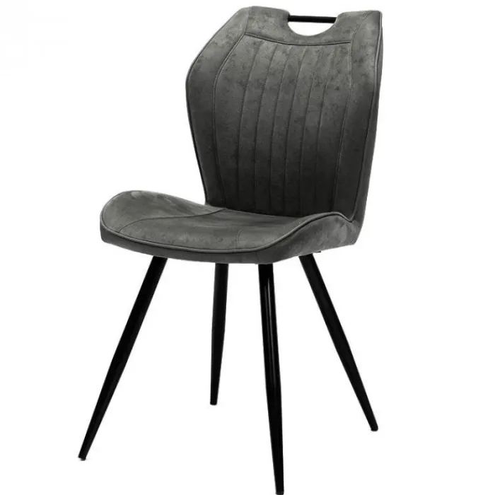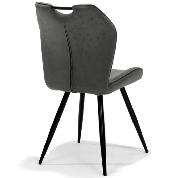 De trendy eetkamerstoel Cobra is gestoffeerd met de prachtige lederlook stof Soft in de kleur antraciet, en is uitgevoerd met zwarte metalen poten. Met het handige handvat op de bovenkant van de rugleuning, schuif je de stoel gemakkelijk naar achteren. Deze stoel heeft een stoere uitstraling en is zowel geschikt voor een industrieel als een moderner interieur!