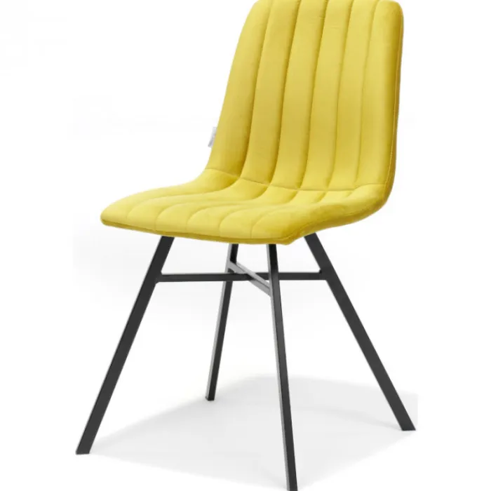 De eetkamerstoel Dex is een trendy eetkamerstoel gestoffeerd met een prachtige velours stof in de kleur okergeel. Het kuipvormige model geeft de stoel niet alleen een mooie look, maar zorgt er ook nog eens voor dat de stoel heerlijk comfortabel zit! Zo kun je urenlang heerlijk tafelen…! De Dex is uitgevoerd met zwarte metalen poten. Deze stoel heeft een enigszins klassieke uitstraling, maar kan ook uitstekend tot zijn recht komen in een wat stoerdere interieur!