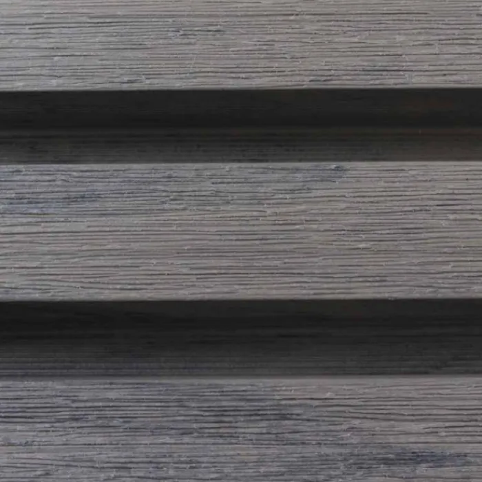 De plank heeft een natuurlijke houtuitstraling door de kleur en nagebootste houtstructuur. Het trapezevormige profiel geeft het geheel een moderne en strakke uitstraling.