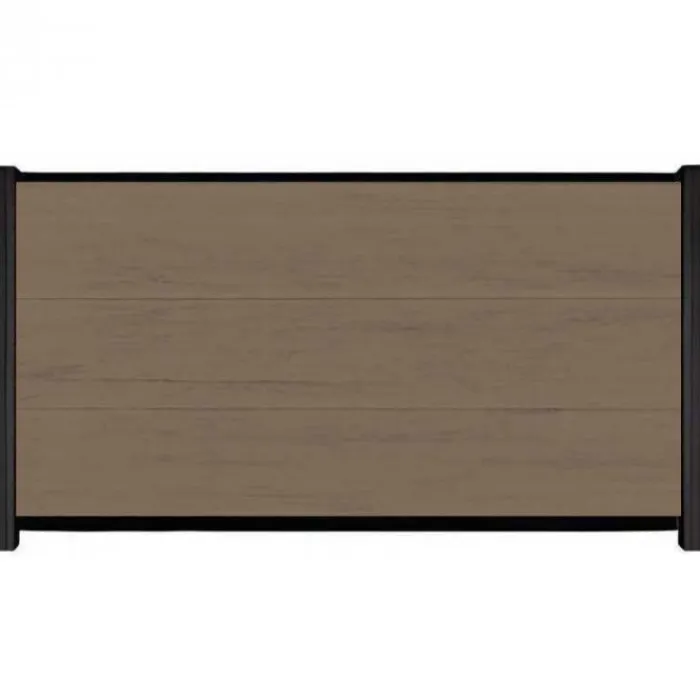 Schutting composiet co-extrusie Como vergrijsd bruin met zwart aluminium kader (180 x 90 cm). Deze schutting wordt geleverd als een zelfbouw pakket waarmee je zelf een unieke schutting kunt maken.