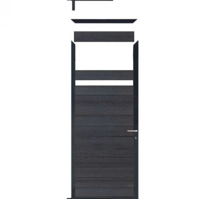 C-Wood tuindeur composiet Mix & Match frame aluminium antraciet gepoedercoat (90 x 200 cm). De netto hoogte van deze tuindeur is enkele centimeters lager dan de opgegeven 200 cm. Deze komt uit op 195 cm hoog. De deur wordt geleverd inclusief deurbeslag.