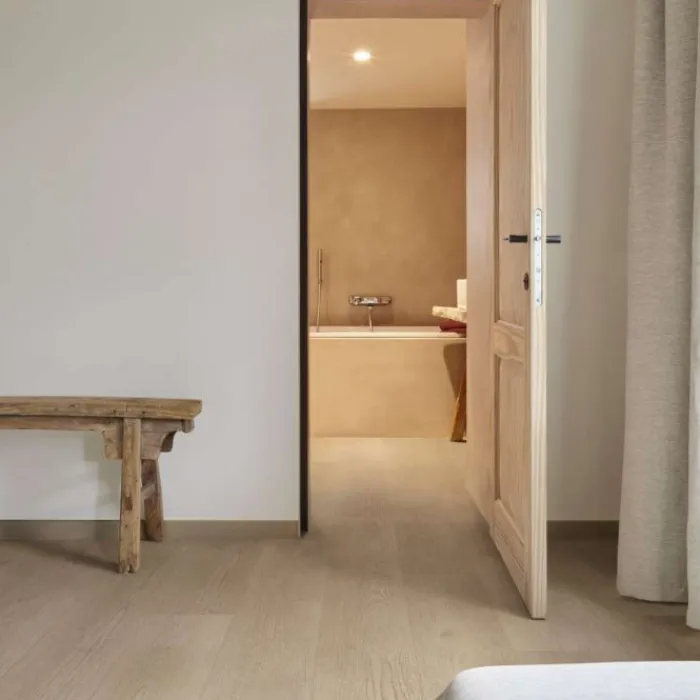 Eerst een duurzame geïntegreerde kurkonderlaag met daarop een akoestische geluiddempende laag. Vervolgens de comfort- en stijlvolle laag die niet te onderscheiden zijn van echt hout en tot slot een hoogwaardige slijtlaag van 0.55 mm dik.