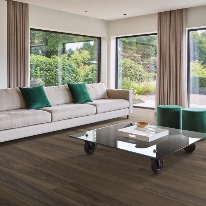 COREtec PVC click vloer Juglans 2,53 m2. Deze vloer is uit 5 lagen opgebouwd.