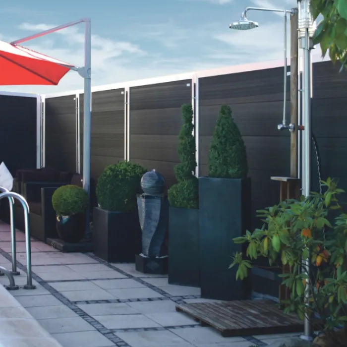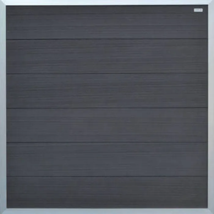 Elephant schutting composiet Forte antraciet met blank aluminium kader. 180 x 180 cm (b x h). Met FSC keurmerk.