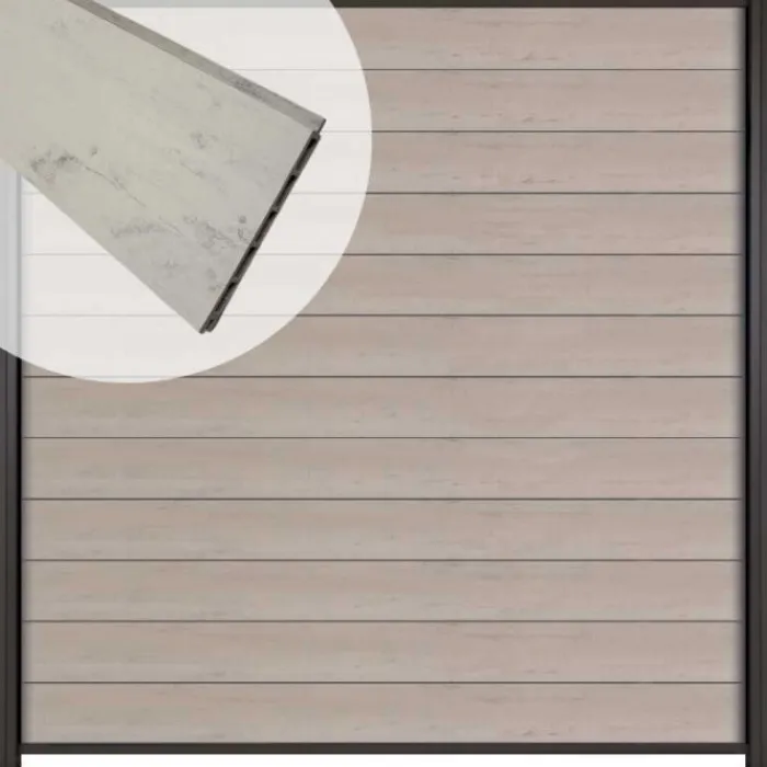 Deze set bestaat uit 12 composiet bicolorgrijs lamellen. Je begint onder en je eindigt bovenop altijd met een aluminium antraciete profielen. exclusief palen! Gebruik hiervoor altijd de Elephant Modular/Mix&Match sleufpalen.