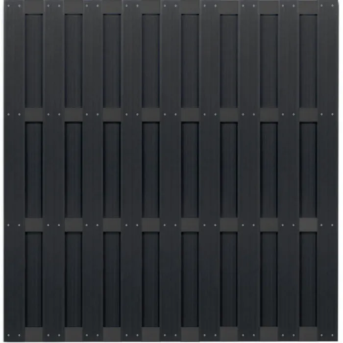 Zelfbouw schutting composiet Ibiza antraciet met antraciet alu accessoires (180 x 180 cm).